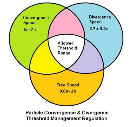 個体の情報粒子の集散の自然状態(個体の元の値=基準値)に基づいて、さまざまな干渉組み合わせを行います(図参照)。これらは、上記の閾値範囲内でコントロールされ、催眠目的を達成しつつ、察知されないようにします。